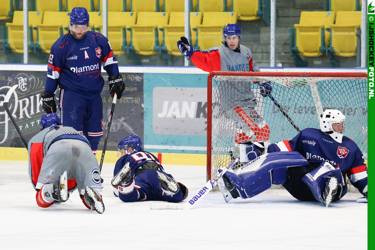 Nijmegen scoort nog wel de 3-2 en 4-2 maar dan komt Eindhoven terug met een 4-4 en met 6 spelers op het ijs zelfs tot 4-4. Een overtime is het gevolg en daarin is Eindhoven diegene met Berry Donders die de uitstekende keepende Juliën van Nes weet te passeren. Eindstand 4-5.